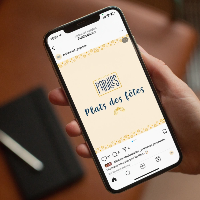 Pour accompagner Papylles dans le développement de son univers visuel, j’ai travaillé sur une direction artistique soignée, en accord avec l’identité raffinée du restaurant. L’objectif ? Concevoir une image à la hauteur de leur cuisine, où élégance et créativité se retrouvent dans chaque détail.J’ai imaginé une charte graphique harmonieuse, conçu des menus épurés et lisibles, et réalisé des publications Instagram attractives, mettant en lumière la richesse et la finesse de leurs plats. Chaque élément a été pensé pour sublimer l’expérience gastronomique et affirmer l’identité unique de Papylles.