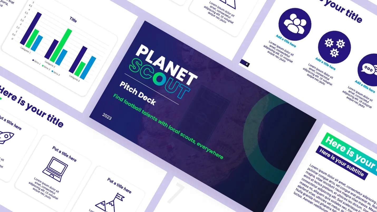 L’équipe de Planet Scout m’a contactée pour concevoir une identité visuelle forte et professionnelle. L’objectif était de traduire leur expertise dans le recrutement de talents footballistiques tout en instaurant une image moderne et dynamique, en phase avec les attentes des clubs, agences et fédérations. Ils souhaitaient une charte graphique impactante et cohérente, capable de renforcer leur crédibilité et leur visibilité sur le marché. J’ai ainsi développé une identité visuelle sur mesure et décliné cet univers graphique à travers plusieurs supports de communication, ainsi qu’un template de slides PowerPoint, garantissant une présentation claire et percutante de leurs services.